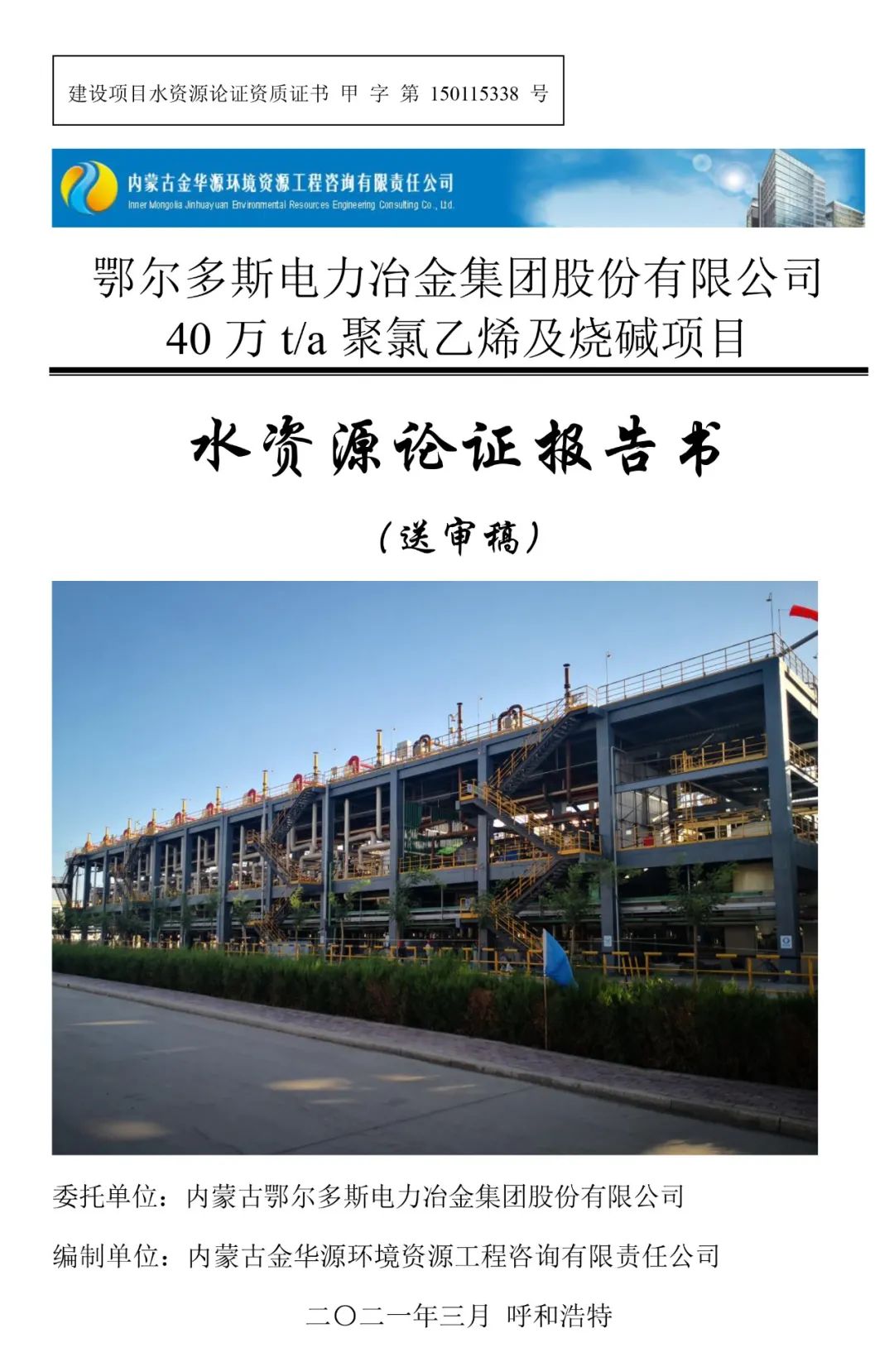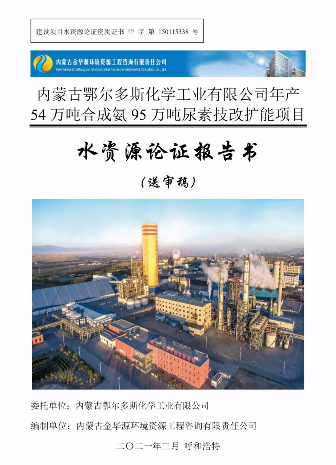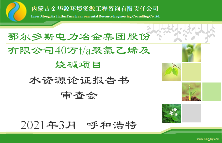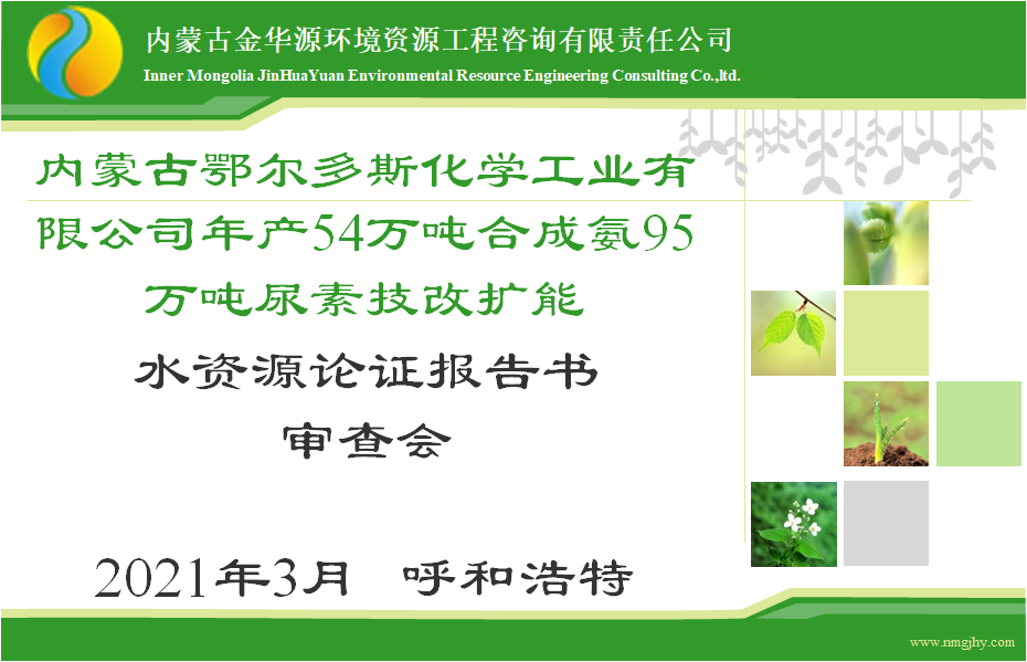 2020年3月19日,由我公司編制的《鄂爾多斯電力冶金集團(tuán)股份有限公司40萬t/a聚氯乙烯及燒堿項(xiàng)目水資源論證報(bào)告書》(PVC二期項(xiàng)目)及《內(nèi)蒙古鄂爾多斯化學(xué)工業(yè)有限公司年產(chǎn)54萬噸合成氨95萬噸尿素技改擴(kuò)能項(xiàng)目水資源論證報(bào)告書》(大化肥項(xiàng)目)雙雙順利通過內(nèi)蒙古自治區(qū)水利廳審查。